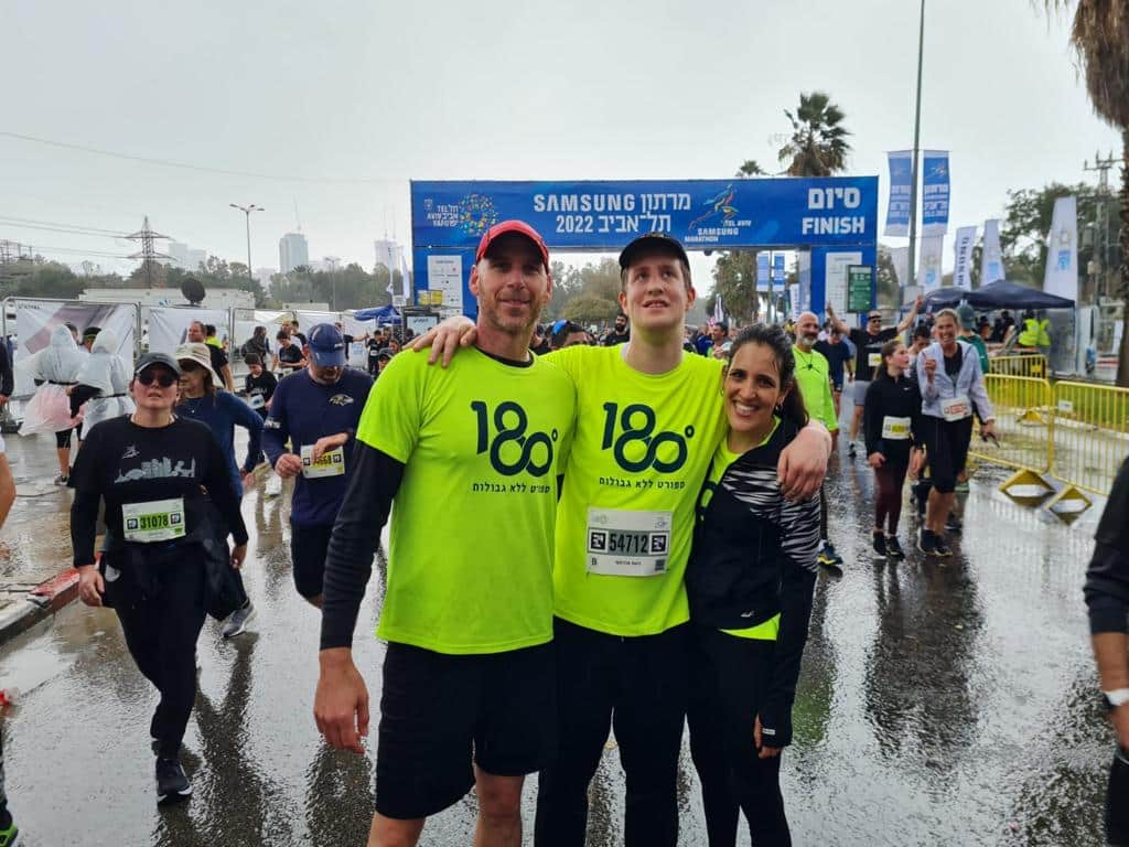 This past Tel Aviv marathon, Noam ran his longest distance of 10K after previously only running 5Ks. “Noam ran ten kilometers nonstop in the rain with two volunteers,” said his father, Avi Abramoff. “He especially loved the feeling of running in the rain this time.”